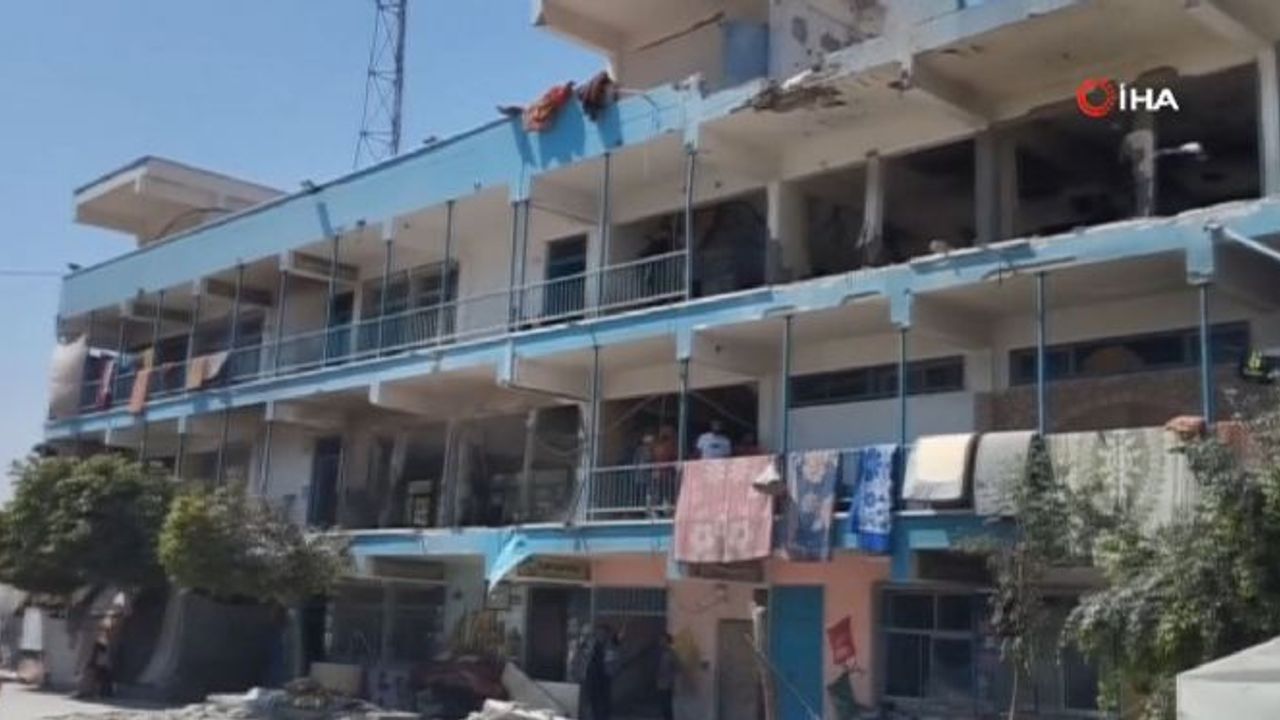 İsrail, Gazze Şeridi'nde sivillere yönelik katliamlarını sürdürüyor. İsrail ordusunun Nuseyrat Mülteci Kampı'nda yerinden edilmiş binlerce Filistinli sivilin sığındığı UNRWA'ya ait 3 katlı El-Sardi Okulu'nu hedef aldığı saldırı, yıkıma yol açtı. Bir füzenin isabet ettiği sınıf kullanılamaz hale geldi.