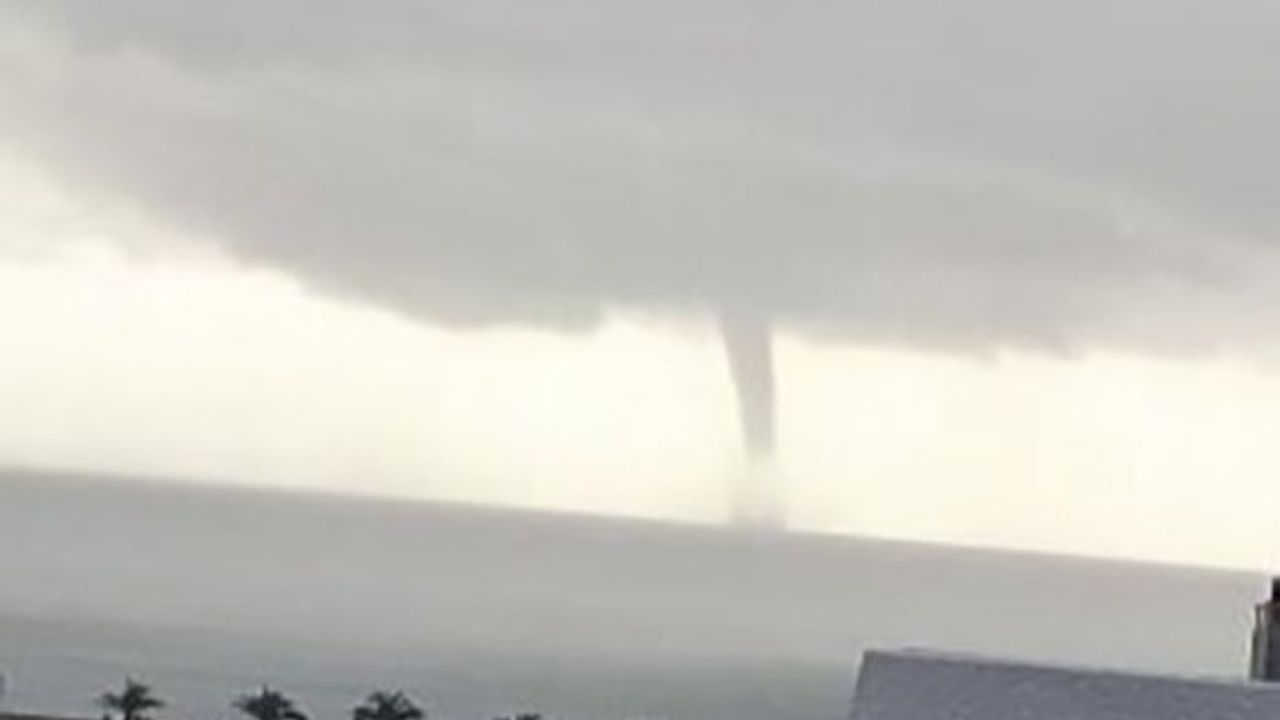 Karaya ulaşmadan etkisini yitiren hortum, vatandaşlar tarafından kayıt altına alındı.