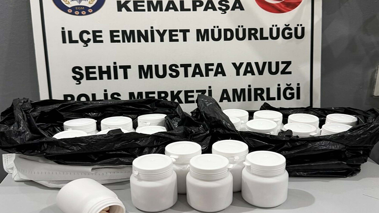 Kemalpaşa İlçe Emniyet Müdürlüğü Polis Merkezi Amirliği ekipleri, ilçe genelinde huzur ve güvenliğin sağlanmasına yönelik yürütülen uygulamalar kapsamında dün akşam saatlerinde şüphe üzerine bir otomobili durdurdu. Otomobildeki aramada, 20 kutu içerisinde toplam 1085 adet sentetik ecza hap ele geçirilirken, araçta bulunan S.B. (21) ve O.T. (19) gözaltına alındı. Şüphelilerden S.B.'nin 'uyuşturucu veya uyarıcı madde imal ve satmak', 'kullanmak için uyuşturucu madde bulundurmak' suçlarından; O.T.’nin ise motosiklet hırsızlığı suçundan kaydının bulunduğu belirlendi. Emniyetteki işlemlerinin ardından adliyeye sevk edilen 2 şüpheli, çıkarıldıkları Sulh Ceza Hakimliği'nce tutuklandı.