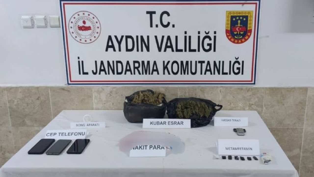 Aydın İl Jandarma Komutanlığı İstihbarat Şube Müdürlüğü ekiplerince uyuşturucu madde imali ve ticaretinin önlenmesine yönelik çalışmalar aralıksız sürüyor. Edinilen bilgiye göre, Nazilli ilçesi Sailer Mahallesi'nde 2 şüpheli şahsın içerisinde bulunduğu plakasız araçta yapılan aramalarda; 650 dram kubar esrar, 16 gram metamfetamin, 1 adet hassas terazi, 3 adet cep telefonu ve bir miktar uyuşturucu ticaretinden elde edildiği değerlendirilen nakit para ele geçirildi. Araç muhafaza altına alınarak yediemine teslim edilirken, araçtaki iki şüpheli de gözaltına alındı.