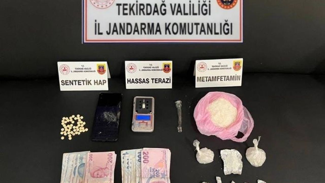 Ergene ilçesi Sağlık Mahallesi'nde yabancı uyruklu A.E. isimli şahsın ikametinde uyuşturucu madde ticareti yaptığının tespiti üzerine, Tekirdağ İl Jandarma Komutanlığı unsurlarınca yapılan aramada; 217 gram metamfetamin, 47 adet captagon hap, 1 adet hassas terazi, 7 bin 200 TL suçtan elde edildiği değerlendirilen para, 1 adet uyuşturucu kullanma aparatı ele geçirildi. Şüpheli gözaltına alınarak soruşturma işlemlerine başlandı.
