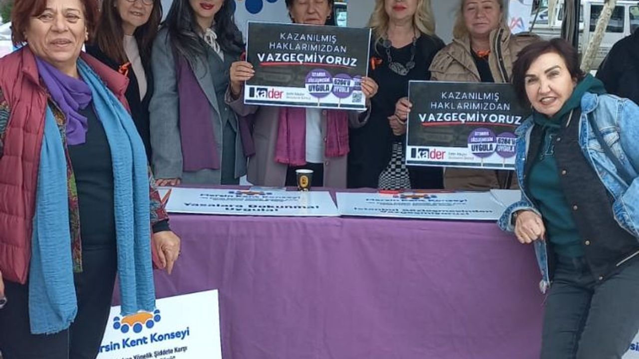 Kadın Adayları Destekleme Derneği (KA.DER) Mersin Şube Başkanı İlksen Sorguç Dinçer, İstanbul Sözleşmesi'ne geri dönülmesi gerektiğini belirterek, "Kadınların hayatlarının ve haklarının güvende olmadığı, eşitliğin yok sayıldığı bu düzeni reddediyoruz" dedi.