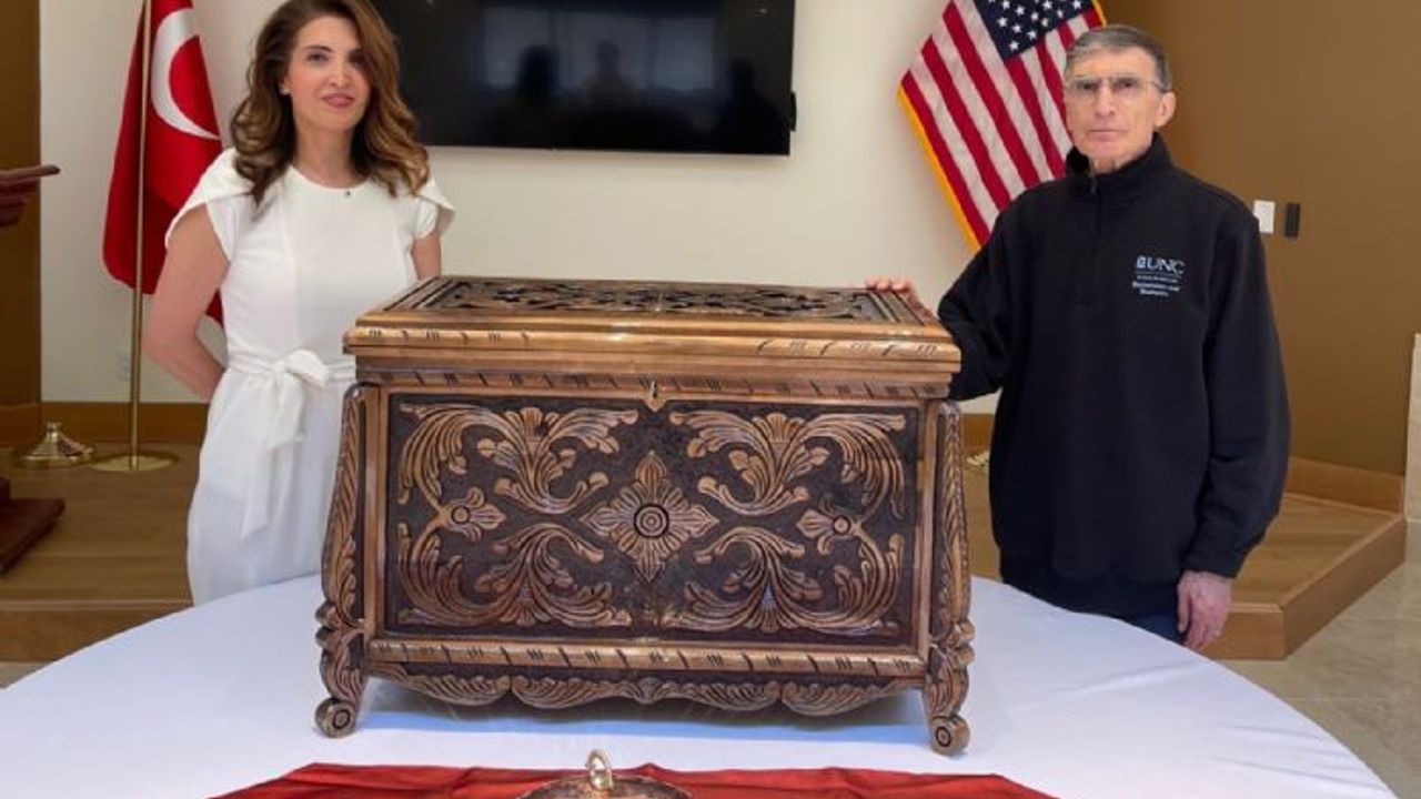 Nobel ödüllü Prof. Dr. Aziz Sancar ise, "Doktor Binnur Özkar'ın vakfımızda gösterdiği gayretli çalışmaları ve Kahramanmaraş Ticaret ve Sanayi Odasının cömert girişimleri ile Kahramanmaraş el sanatlarını vakfımızda sergilemekten mutluluk duyuyoruz. Kahraman şehrinize nazik davetiniz için ayrıca teşekkür ediyorum. Yakın zamanda eşim Gwen Sancar ile beraber ziyaret etmeyi arzu ediyoruz" dedi. Sergide kentin el oyma sandığından bakır işlemeli ürünlerine, sim sırmadan bakır ve altın işlemeciliği gibi birbirinden farklı ürünler yer alıyor. (İHA)
