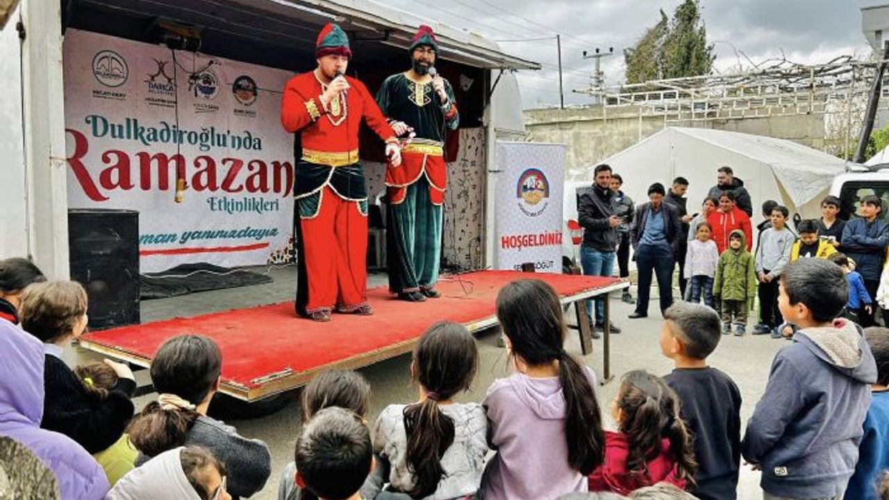 Körfez Belediyesi, ilçe genelinde olduğu gibi deprem bölgesi Kahramanmaraş'ın Dulkadiroğlu'nda da çocuklar için etkinlikler düzenliyor, masal kahramanlarını onlarla buluşturuyor. Kültür ve Sosyal İşler Müdürlüğü ekipleri, kardeş belediye olan Dulkadiroğlu'nda her gün bir mahallede farklı etkinlikler düzenleyerek, çocukların biraz olsun depremin izlerinden kurtulması için destek sağlıyor. "Her şey sizlerin mutluluğu için" sloganı ile gerçekleştirilen etkinlikler çerçevesinde ekipler Dulkadiroğlu'nda kırsal alandaki mahallelerde çocukları Hacivat ve Karagöz ile buluşturdu. Kahkaha seslerinin havada uçtuğu programda çocuklar tek tek sahneye çıktı, hünerlerini de sergiledi. (IHA)
