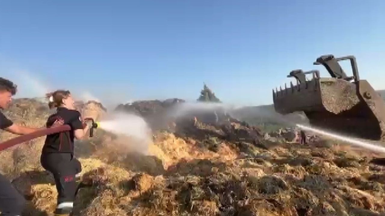 İtfaiye ekiplerinin hızlı müdahalesi sonucu yangın kontrol altına alınarak söndürüldü. Soğutma çalışmalarının da tamamlandığı alanda yapılan ilk tespitlere göre yaklaşık 300 ton saman yandı.