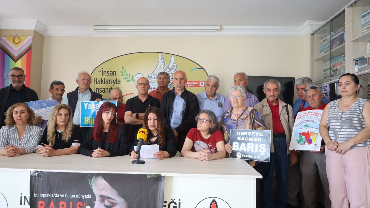 Basın metnini İHD adına Mersin Şube yöneticisi Şükran Aktaş okudu. Aktaş "İnsan Hakları Derneği olarak, silahların susmasının ve çatışmalı ortamdan kaynaklı yaşam hakkı ihlallerinin ortadan kalkmasının tek başına bütün halkların barış fikri etrafında bir araya gelmesi için yeterli bir neden olduğu kanaatindeyiz" dedi.