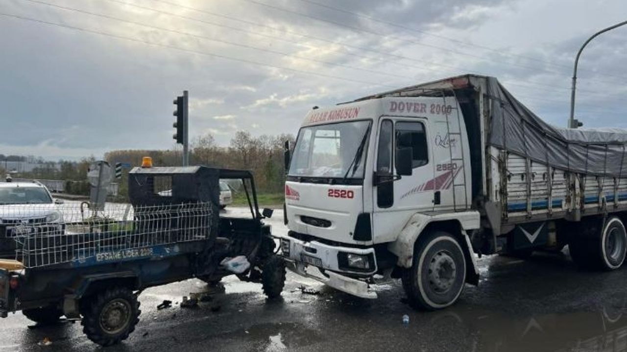 Kaza, D-140 kara yolu Batakköy Kavşağı'nda meydana geldi. Edinilen bilgiye göre, S.T. kontrolündeki 54 VH 653 plakalı kamyon ile İ.Y. kontrolündeki 'patpat' diye tabir edilen tarım aracı kafa kafaya çarpıştı.