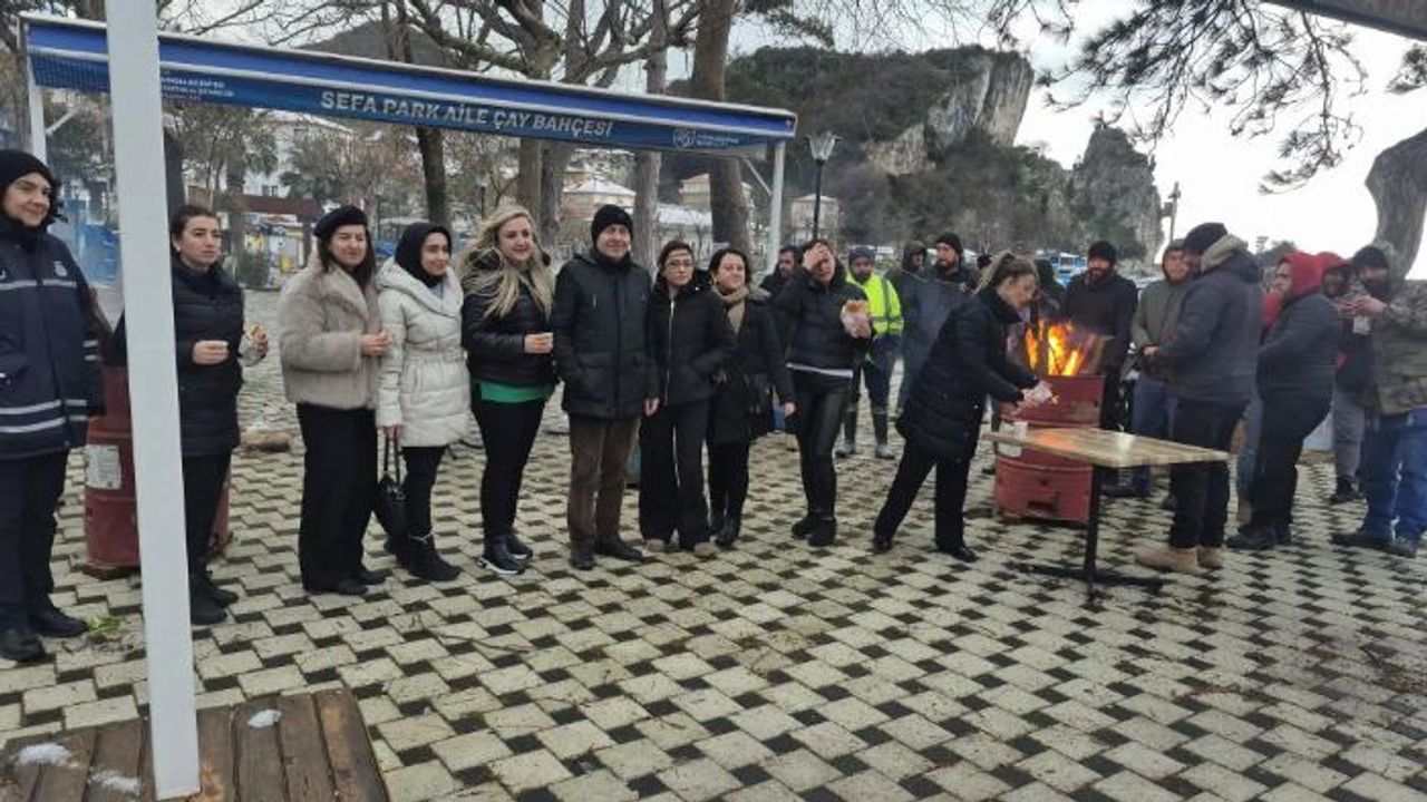 Amasra Belediye Başkanı Recai Çakır, başta karla mücadele ekipleri olmak üzere son dönemlerde yoğun bir tempoda çalışan tüm belediye personeline sucuk ekrem ikram etti. Sefa Park'ta gerçekleşen programda personel sucuk ekmek yiyerek stres attı. Belediye Başkanı Çakır, uzun süredir belediye çalışanlarına sözü olduğunu ifade ederek, başarılı ve yoğun çalışmaları nedeniyle personele teşekkür etti. Çakır, "Zorlu bir karla mücadele yürütüyoruz. Ekiplerimiz zorlu şartlara rağmen gece gündüz kesintisiz bir çalışma yürütüyor. Şu ana kadar süreci sıkıntısız geçirdik. Doğal gaz çalışmalarından günümüze kadar yoğun ve özverili çalışan tüm personelimize teşekkür ediyorum" dedi.