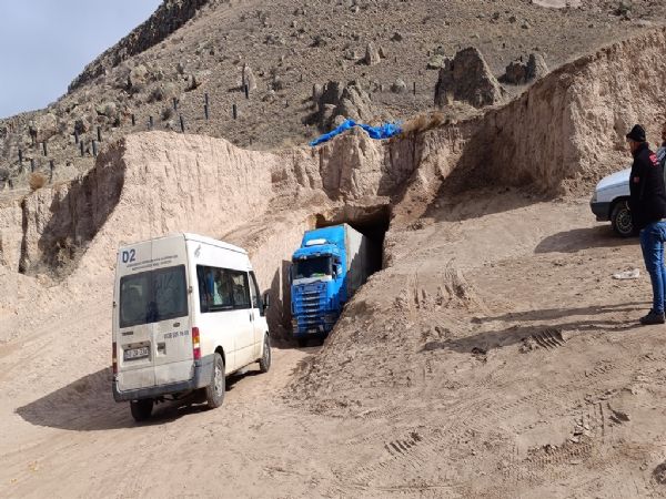 Kayseri'nin Yeşilhisar ilçesinde ekim ve kasım ayı arasında tarlalardan toplanan kışlık patatesler, kayadan oyma mağaralara götürülüyor.