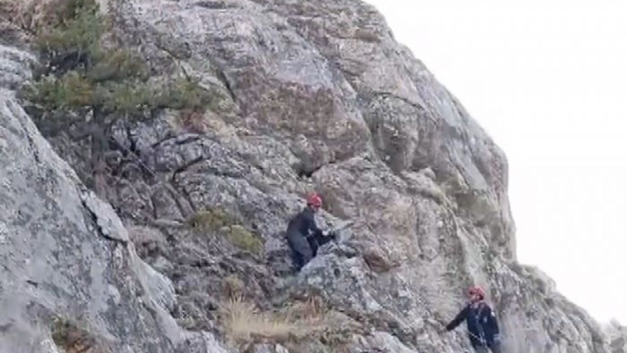 İhbar üzerine olay yerine gelen ekipler halatlar yardımıyla çıktıkları kayalıklarda mahsur kalan 6 keçiyi kurtararak sahibine teslim etti.