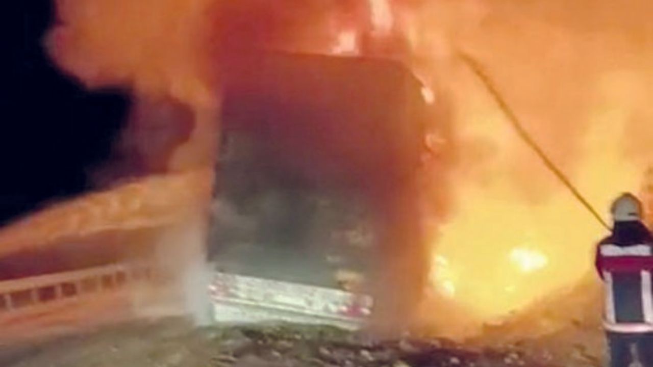 Edinilen bilgilere göre, Mut-Ermenek yolu 45. kilometresi üzerinde yağmurun da etkisiyle, 60 RD 693 plakalı kamyon sürücüsü Mustafa Ağalday'ın direksiyon hakimiyetini kaybetmesi sonucu kaza meydana geldi. Yoldan çıkan kamyonun kupa kısmında başlayan yangın, kısa sürede dorse kısmına sıçradı. Kısa sürede olay yerine gelen itfaiye ekiplerinin müdahalesi sonucu yangın söndürüldü. (İHA)