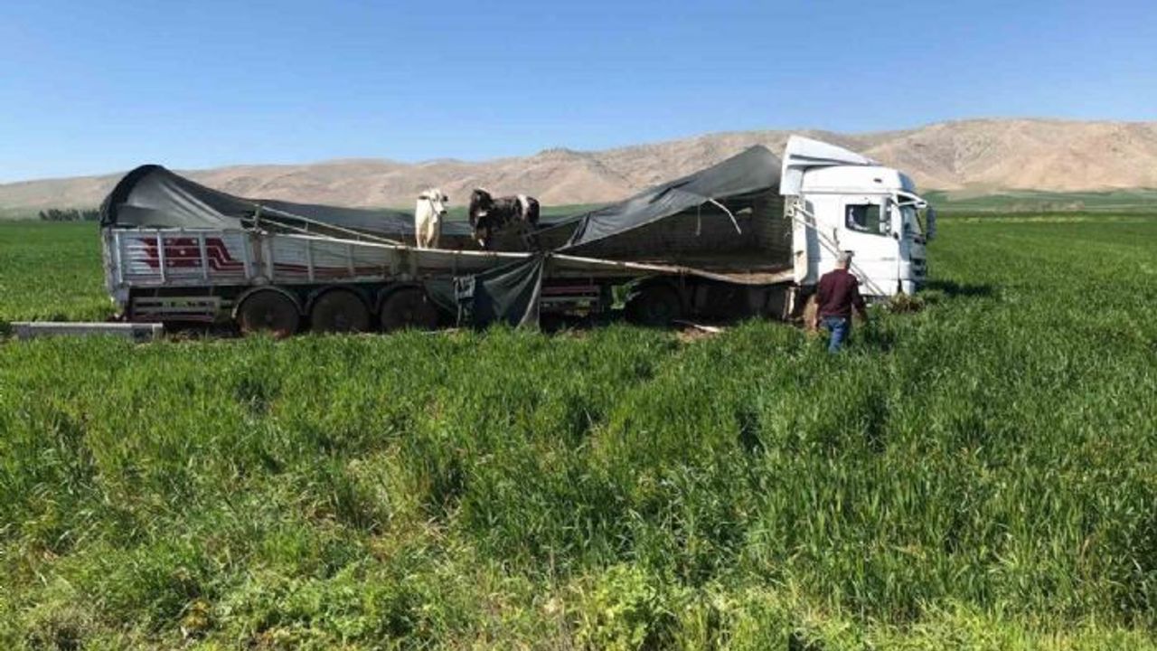 Alınan bilgiye göre plakası belirlenemeyen tır, sürücüsünün direksiyon hakimiyetini kaybetmesi sonucu tarlaya daldı. Tırın dorsesinde bulunan inekler karayoluna dağıldı. Kazayı görenlerin haber vermesi üzerine olay yerine sağlık ve polis ekipleri sevk edildi. Kazada sürücü hafif yaralandı. Yaralanan sürücü, ambulansla Nusaybin Devlet Hastanesine kaldırıldı.