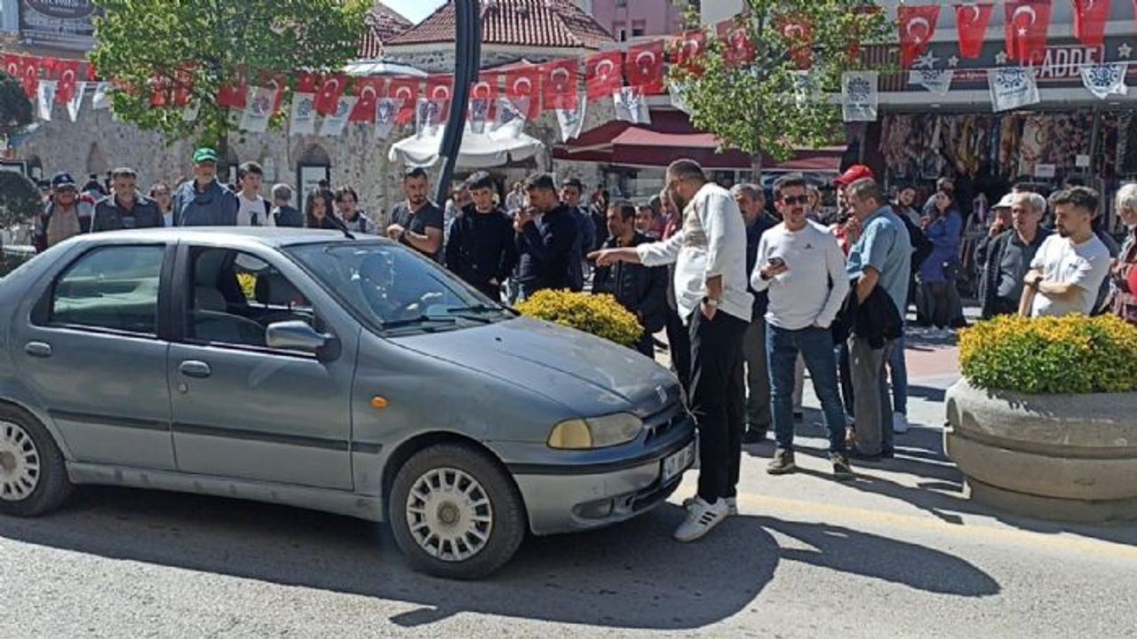 Kendisine yol vermeyen otomobilin önünden dakikalarca çekilmedi