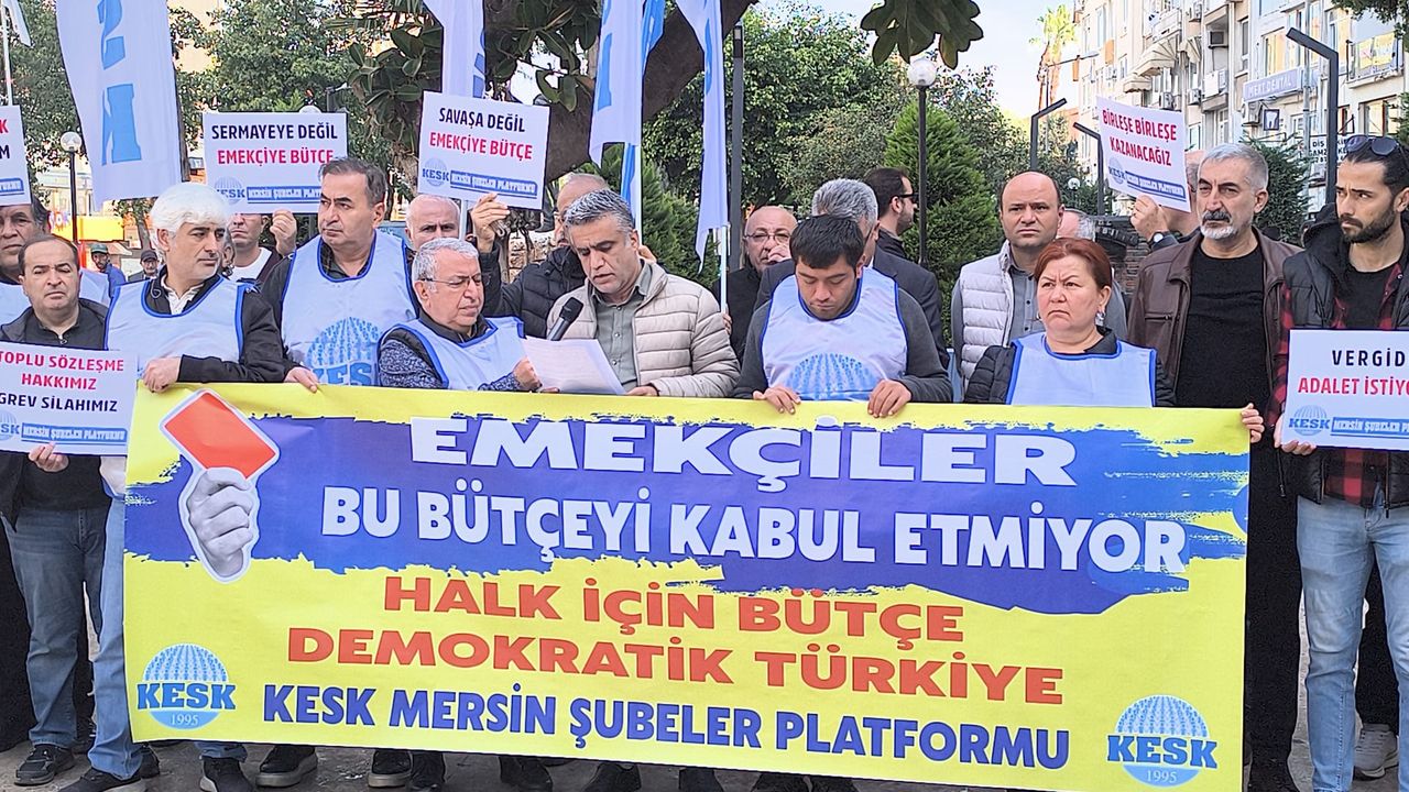 Mersin’de bir araya gelen kamu emekçileri, bütçe görüşmelerinin son aşamasına gelindiği bugünlerde, teklifin rakamsal verileri üzerinden hükümetin ekonomi politikalarını eleştirdi. "Halk için Bütçe, Demokratik Bir Ülke İstiyoruz" pankartı arkasında toplanan grup adına konuşan Doğan Yarlıgaç, bütçeyi bir "turnusol kağıdı" olarak nitelendirdi.