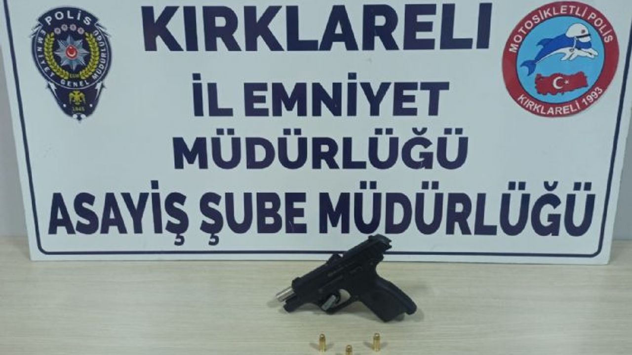 Kırklareli İl Emniyet Müdürlüğü Asayiş Şube Müdürlüğüne bağlı Motosikletli Polis Timleri (Yunuslar) Büro Amirliğince yapılan çalışmalarda; şüphe üzerine durdurulan F.E. isimli şahsın yapılan üst yoklamasında 1 adet ruhsatsız tabanca ve 1 adet bıçak ele geçirilmiş, şahıs adli mercilere sevk edildi.