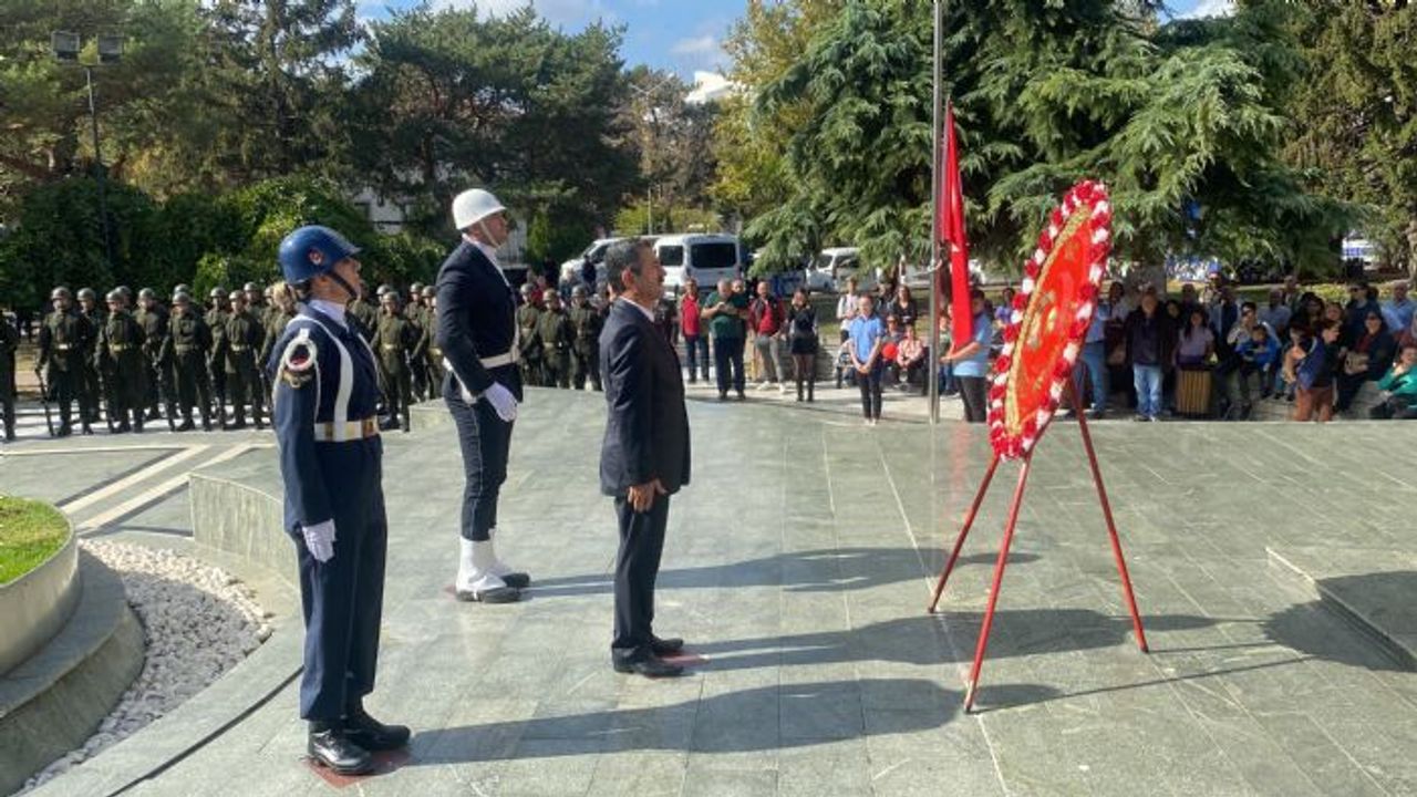 Özgürlük ve Demokrasi Meydanında bulunan Atatürk Anıtında Valilik, Garnizon Komutanlığı ile Belediye Başkanlığı çelenkleri koyuldu.