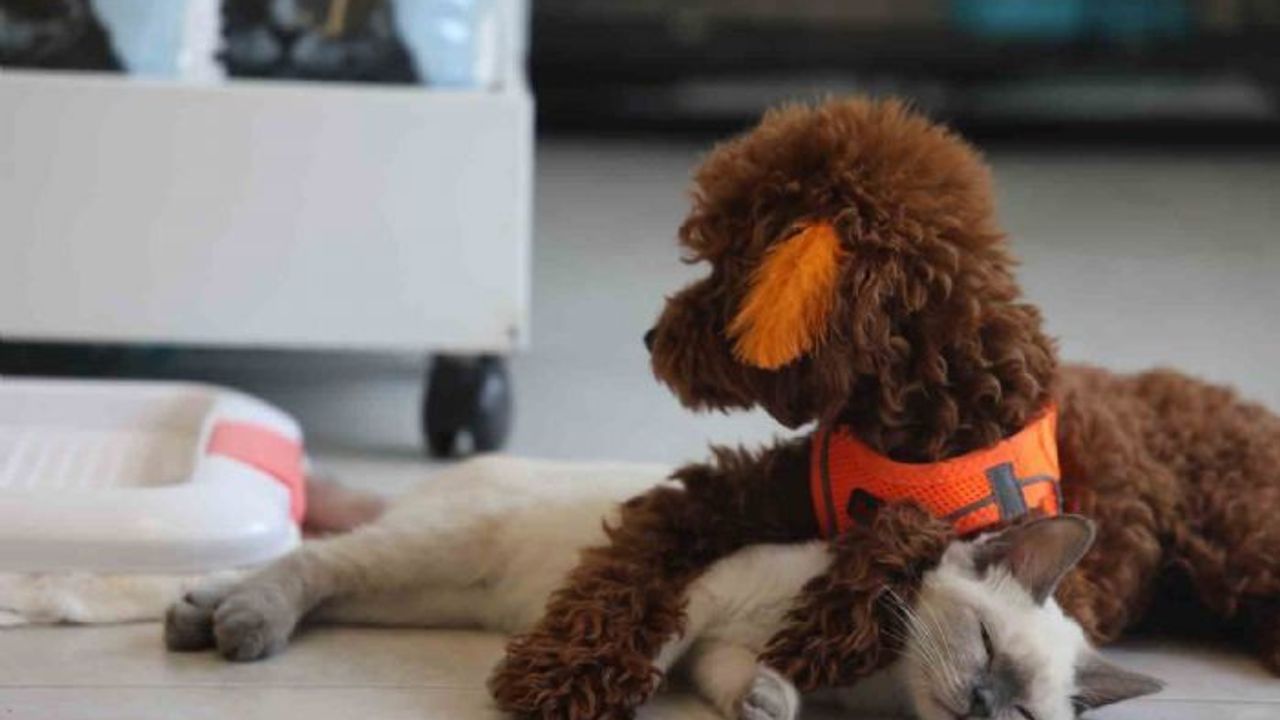 Elazığ'da pet kuaför işletmeciliği yapan Burhan Canpolat'ın baktığı köpek ile kedinin birlikte oyun oynadığı ve vakit geçirdiği anlar vatandaşların dikkatini çekiyor. Canpolat, kedi ve köpeğinin küçükken birbiriyle kaynaştığını, birlikte büyüdüğünü söyledi.