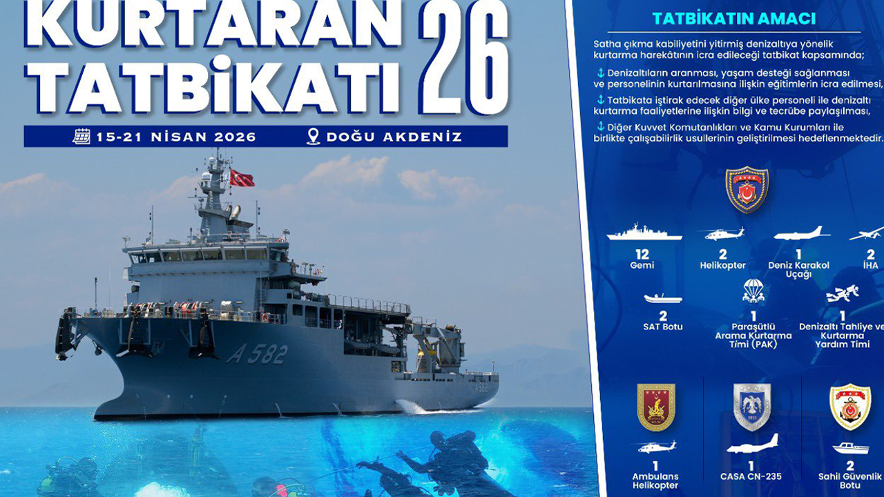 Bakanlığın sanal medya hesabından yapılan açıklamada, "KURTARAN-2026 Denizaltı Arama Kurtarma Davet Tatbikatı, NATO’nun DYNAMIC MINOTAUR Masabaşı Denizaltı Arama Kurtarma Tatbikatı ile ilişkilendirilmiş olarak 15-21 Nisan 2026 tarihleri arasında Aksaz açıklarında başladı" ifadelerine yer verildi.
