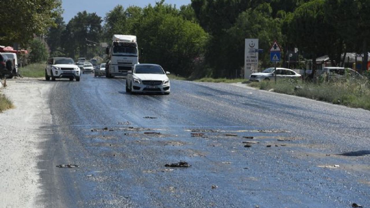 Vatandaşlar, "Karayolları ekipleri ziftin üzerine mıcır döktü ama zift eridi. Sıcaktan eriyen ziftten dolayı ayakkabı ve terliklerimiz asfalta yapıştı" diye konuştu.