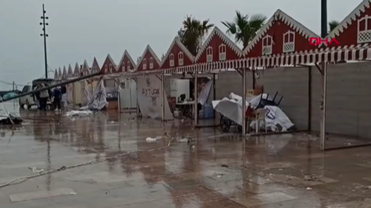 Hatay’ın İskenderun ilçesinde etkili olan kuvvetli rüzgarda bazı evlerin çatıları uçtu, elektrik direkleri devrildi, sahildeki satış stantları yıkıldı.
