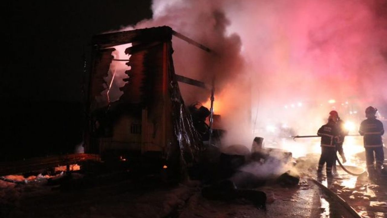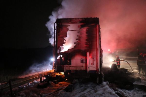 Otoyolun Sakarya-Kocaeli sınırı Beşevler Mahallesi mevkii İstanbul istikametinde meydana gelen olayda, yabancı uyruklu P.A. idaresindeki yabancı plakalı kamyonun ekinde bulunan lastik yüklü yarım dorse alev alev yandı.