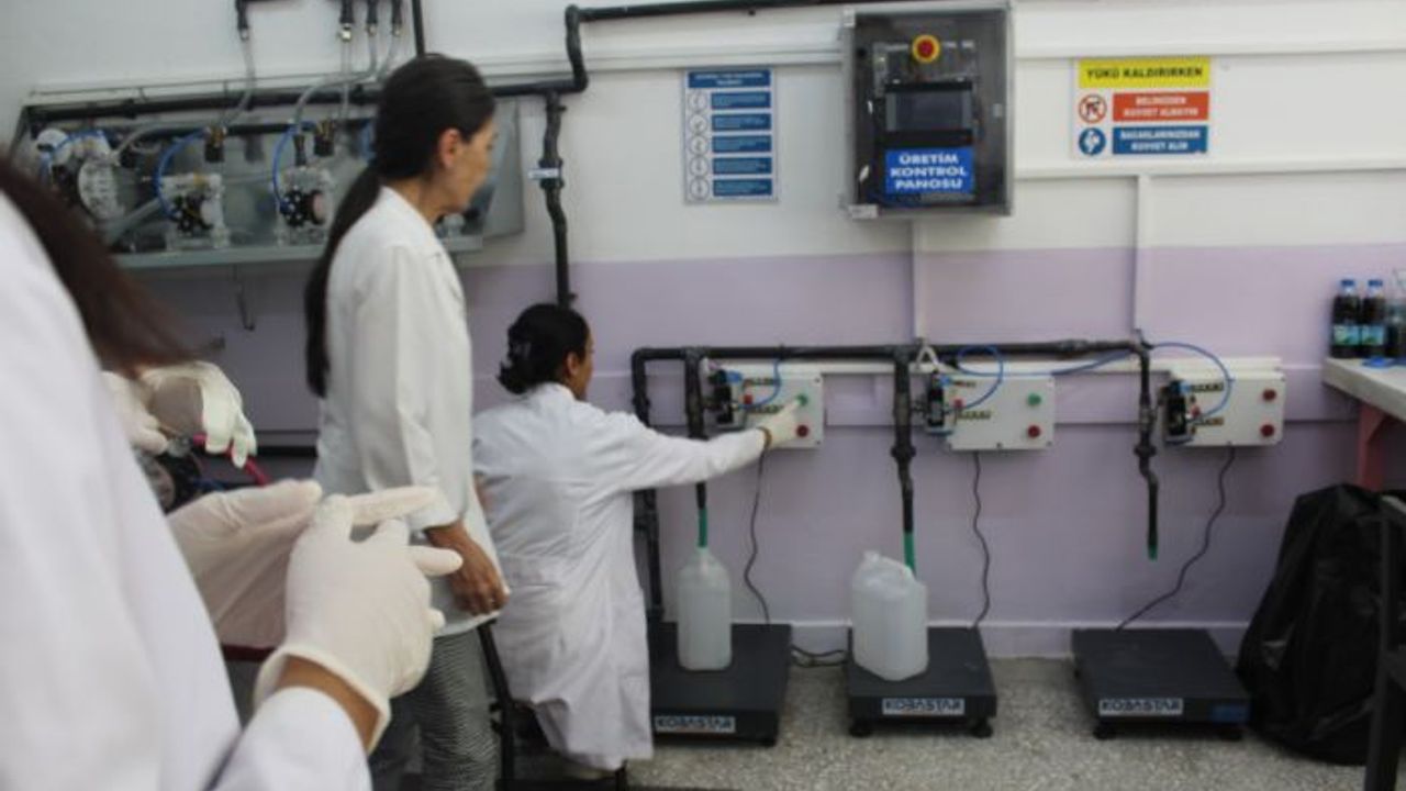 Kimya Bölümü Teknisyeni Berrin Güçlü ise zamanla tecrübe kazandıklarını belirterek, "Biz burada pandemi döneminde Sırrı müdürümüz sayesinde maske üretimiyle işe başladık. Daha sonra dezenfektan ve kolonya üretimiyle atölye kurulumumuzla temizlik ürünlerine yöneldik. İlk başta tecrübesizlikten dolayı yavaş yavaş üretim yapmaya başladık. Bu yıl bizim 3. yılımız. Şu an çok gelişmiş vaziyette ve otomatik sistemimiz var. Öğrenciler ile birlikte döner sermayeye bağlı olarak çalışmalarımız devam ediyor. Yaz tatili boyunca da bunu zevkle yapıyoruz. Bu bizim önceliklerimizden geliyor. Yaz tatilinde de üretim yapmayı çok arzu ediyorlar. Özel kurumlar olsun, yurtlar olsun, siparişler oluyor. Talep öğrenciden gelince biz de seve seve canla buraya üretime geliyoruz. Öğrencilerimizle birlikte bir şeyler üretmek, bir şeylere katkı sağlamak. Hem onlara hem çevreye hem de okulumuza maddi katkı sağlıyor. Bu durumdan memnunuz" diye konuştu.