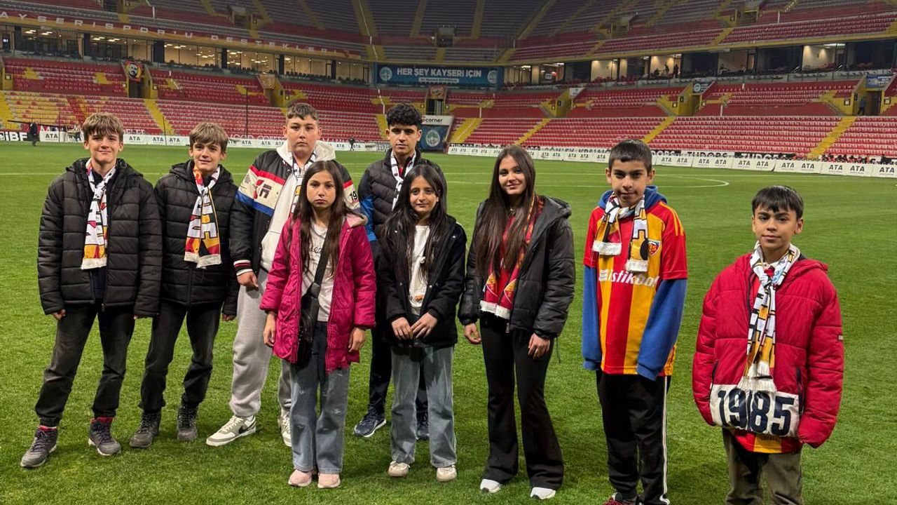 Manisa’nın Salihli ilçesinde yaşayan ortaokul öğrencisi 11 kişi Zecorner Kayserispor-Fenerbahçe karşılaşmasını takip etmek için 800 kilometre mesafeden Kayseri’ye geldi.