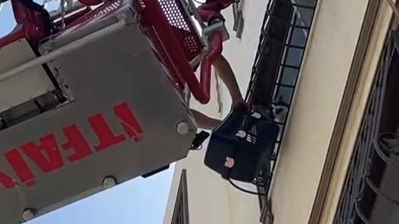 Hatay'ın Arsuz ilçesinde bir binanın demir korkuluklarına sıkışarak mahsur kalan kedi, itfaiye ekiplerince kurtarıldı.