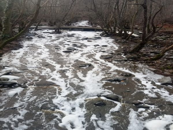 İlçe halkının çevresinde piknik yaptığı Ketenlik Deresi'nin üzeri köpük tabakasıyla kaplandı.