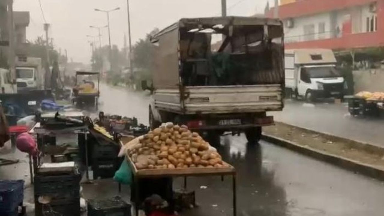 Mardin'in Kızıltepe ilçesinde akşam saatlerinde sağanak yağış ve şiddetli rüzgar etkili oldu. Sağanak ve şiddetli rüzgar, kurulan pazarda çadırların uçmasına neden olurken, vatandaşlar da zor anlar yaşadı.