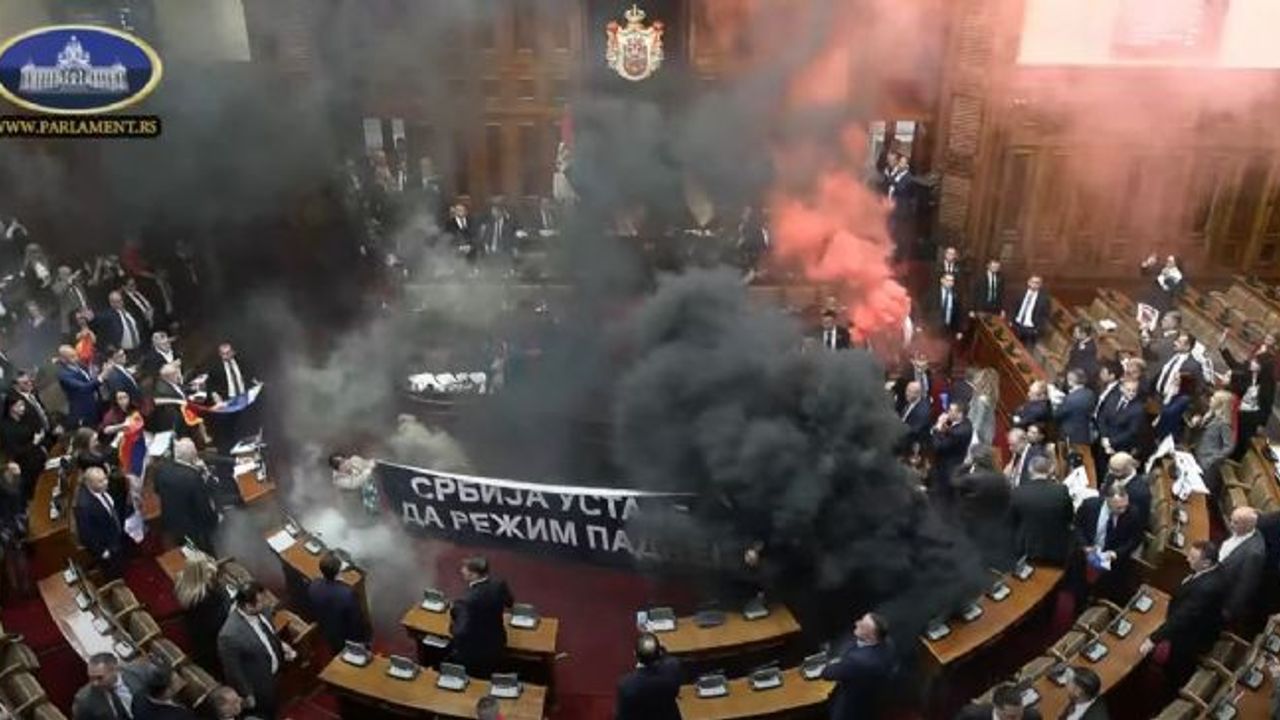 Sırbistan'da Meclis Başkanı Ana Brnabic'in yönettiği meclis, Başbakan Milos Vucevic'in istifası, yükseköğretim kanunu gibi konuların da bulunduğu 62 maddeyi görüşmek için toplandı. Gündem kabulünün ardından muhalefetteki Yeşil Sol Cephe milletvekillerinden Radomir Lazovic kürsüye yöneldi fakat parlamento güvenliğinin müdahalesiyle karşılaştı. Muhalefet ve iktidar milletvekillerinin de kürsünün olduğu bölgeye gelmesiyle arbede yaşandı. Muhalefet milletvekillerinin meşale yakması ve sis bombası atmasıyla meclis salonunu kırmızı, siyah ve beyaz dumanlar kapladı. Kavga eden milletvekillerinden bazıları yaralandı.