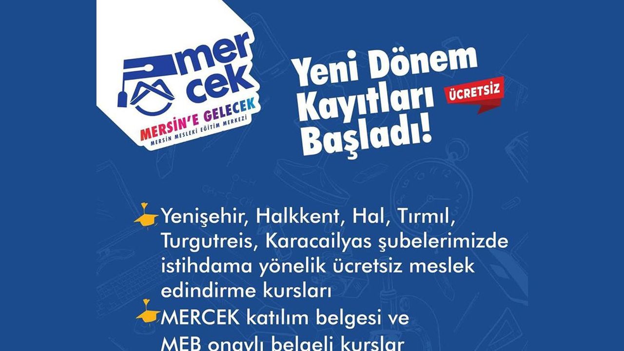 MERCEK Mesleki Eğitim Merkezlerinde açılacak kurslar arasında; Giyim Üretim Teknolojileri (Dikiş), Hasta ve Yaşlı Bakımına Destek Elemanı Eğitimi, Barista (Kahve Yapımı ve Sunumu), Saç Kesim Teknikleri, Çelik Kaynakçısı, İnşaat Boyacısı, Makine Bakım ve Onarım, Mobilya İmalatı ve Montajı, Çanta Yapımı, Makyaj Uygulayıcısı, Bilgisayar Sistem Bakım ve Onarım ile Bilgisayar İşletmenliği yer alıyor. Kurslar kontenjanla sınırlı olup ön başvurular online olarak alınacak. Eğitimler; Yenişehir, Halkkent, Hal, Tırmıl, Turgutreis ve Karacailyas şubelerinde gerçekleştirilecektir. Katılımcılara meslek edindirme imkanı sunulan kursları başarıyla tamamlayanlara MERCEK Katılım Belgesi ve Milli Eğitim Bakanlığı (MEB) onaylı sertifika verilecektir. Başvurular, 4 Şubat 2026 Çarşamba günü başlayacak ve 7 Şubat 2026 Cumartesi günü saat 17.00’de sona erecektir. Detaylı bilgi ve başvuru işlemleri mercek.mersin.bel.tr adresi üzerinden yapılabilecek. Mersin Büyükşehir Belediyesi, bu ücretsiz kurslara tüm vatandaşları davet etti.
