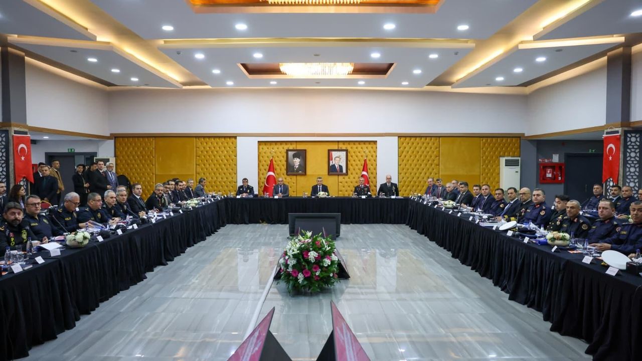 Mersin Valisi Atilla Toros, birlikte Mersin İl Jandarma Komutanı Tuğgeneral Ercan Atasoy, İl Emniyet Müdürü İdris Yılmaz ve Sahil Güvenlik Akdeniz Bölge Komutanı Tuğamiral Gökmen Gücüyen ile birlikte, asayiş yıl sonu değerlendirme toplantısı gerçekleştirdi. Mersin Öğretmen Evi'nde gerçekleşen toplantıda konuşan Vali Atilla Toros, 2025 yılının Mersin’in huzur ve asayişini daim kılma, iradeleriyle, güvenlik birimlerinin eliyle, sahaya kararlılıkla yansıtıldığı bir yıl olduğunu belirterek, "Bu irade jandarma, emniyet ve sahil güvenlik başta olmak üzere tüm güvenlik güçlerimizin; özverili çalışmalarıyla, somut başarılara dönüşmüştür. Huzuru bozan, suçu geçim kapısı haline getiren, özellikle gençlerimizin geleceğine kasteden, hiçbir kişi ya da yapıya, asla geçit vermedik.