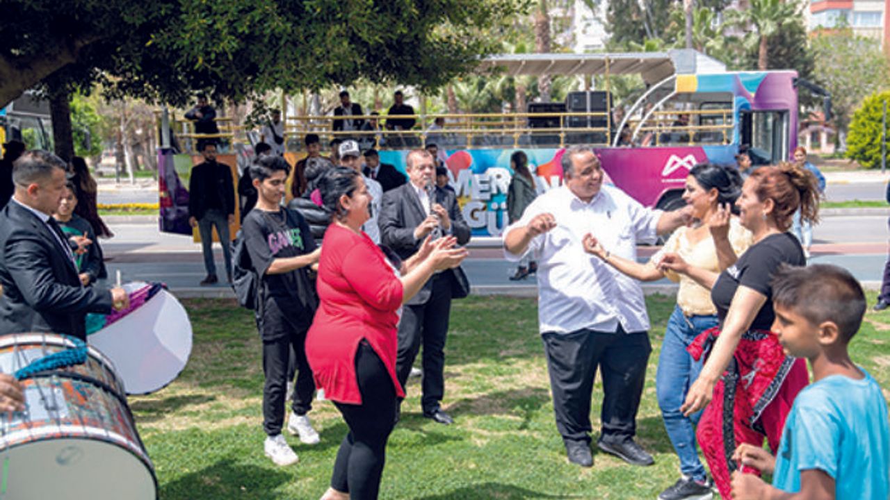 Mersin'de yoğun olarak Akdeniz ilçesi Turgutreis Mahallesi'nde yaşayan Roman vatandaşlar, Büyükşehir Belediyesi Kültür ve Sosyal İşler Dairesi'nin organizasyonuyla kent turu attı. Üstü açık otobüslere binen Romanlar, geleneksel kıyafetleri ve çaldıkları şarkılarla Mersin sokaklarını renklendirdi. Turgutreis Mahallesi'nden kalkan otobüsler Adnan Menderes Bulvarı'nı baştan sona turladı. Romanlar zaman zaman otobüsleri durdurup Kültür Park'ın çimlerinde dans etti. Çevredeki vatandaşlar ise söylenen şarkılara eşlik ederken, o dakikaları telefon kameralarıyla ölümsüzleştirdi.