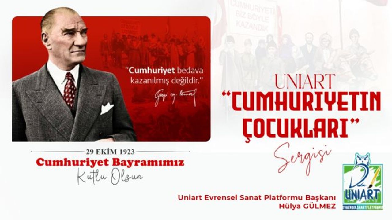 UNİART Evrensel Farkındalık Platformu, Cumhuriyet'in 101. yılı dolayısıyla 'Cumhuriyet'in Çocukları' temalı uluslararası resim sergisi açtı. 15 ülkeden 55 sanatçının katkılarıyla gerçekleştirilen sergide, özgürlük ve bağımsızlık değerleri sanata yansıtıldı.