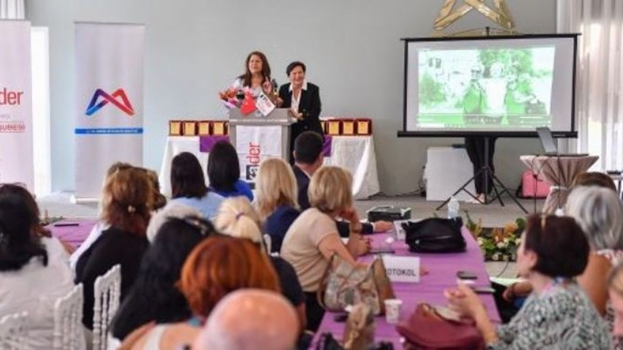 Mersin Büyükşehir Belediyesi Nikah ve Etkinlik Salonu'nda KA-DER öncülüğünde yapılan etkinlikte kadın muhtarlar, kadın meclis üyeleri ve sivil toplum derneklerinin kadın temsilcileri yer aldı.