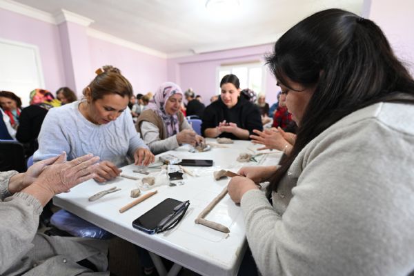 Uzman Psikolog ve Oyun Terapisti Berna Yiğitbaş, Mersin Büyükşehir Belediyesi'nde dönem dönem gönüllü olarak etkinliklere dahil olduğunu anlatarak, "Bugün de Emekçi Kadınlar Günü vesilesiyle, atölyedeki üretici kadınlara destek olmak amacıyla ve öz şefkat başlığında farkındalık yaratabilmek amacıyla bir atölye gerçekleştirdik. Atölyenin içeriği öz şefkat ve sanatın iyileştirici gücüydü. Kadın olmanın farklı hallerini konuştuğumuz; anne, çalışan, eş, dost olma ama özünde kendimiz olmaya dair bir çalışmaydı. Buralara dair biraz sohbet ettikten sonra, seramik aracılığıyla içlerindeki çocukluklarını ve çocukluklarındaki güvenli nesneyi bulmalarını sağladığımız bir sanat atölyesi gerçekleştirmiş olduk. Kendi iç dünyamıza dönüp bakabildiğimizde, öz şefkati kendimize gösterebiliyoruz. Bugün de bu minik anımsatıcılarla beraber keyifli bir atölye gerçekleştirdik" dedi.