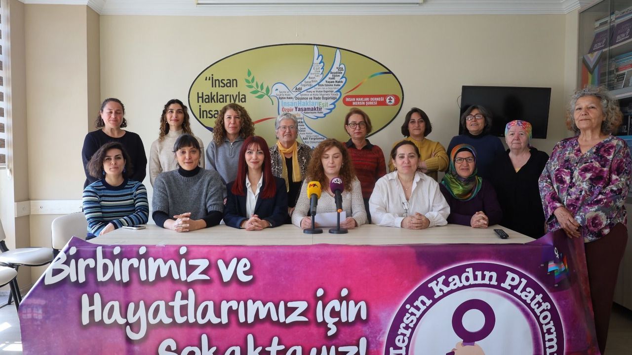 Mersin Kadın Platformu, 8 Mart Dünya Kadınlar Günü dolayısıyla basın açıklaması yaptı. Platform adına basın açıklamasını okuyan Ayşenur Önal; kadınların eşitsizliğe, erkek şiddetine ve ayrımcılığa maruz kaldıklarına dikkat çekerek "Yüzyılı aşkın bir süredir kadınların eşitlik, özgürlük ve adalet mücadelesinin simgesi olan 8 Mart, bizlere bir kez daha haklarımızı lütufla değil, mücadeleyle kazandığımızı, kaybetmemek için de örgütlü olmamız gerektiğini hatırlatıyoruz. Artan kadın cinayetleri, şüpheli kadın ölümleri ve erkek şiddeti, yaşam hakkımızın sistematik biçimde tehdit altında olduğunu bir kez daha göstermiştir. Kadınlar evlerinde, işyerlerinde, sokaklarda; boşanmak istedikleri için, barışmak istemedikleri için, kendi hayatlarına dair söz söyledikleri için erkekler tarafından öldürülüyor. Cezasızlık politikaları, iyi hal indirimleri ve etkin soruşturma yürütülmemesi; faillere açıkça cesaret veren, şiddeti fiilen teşvik eden bir zemin yaratıyor. Bu zemin, kadınları itaatkar, sessiz ve denetim altında tutmayı hedefleyen erkek egemen düzenin bilinçli tercihlerinin sonucudur. Çünkü erkek şiddeti münferit değil, patriyarkanın kurumsallaşmış bir aracıdır” ifadelerini kullandı.