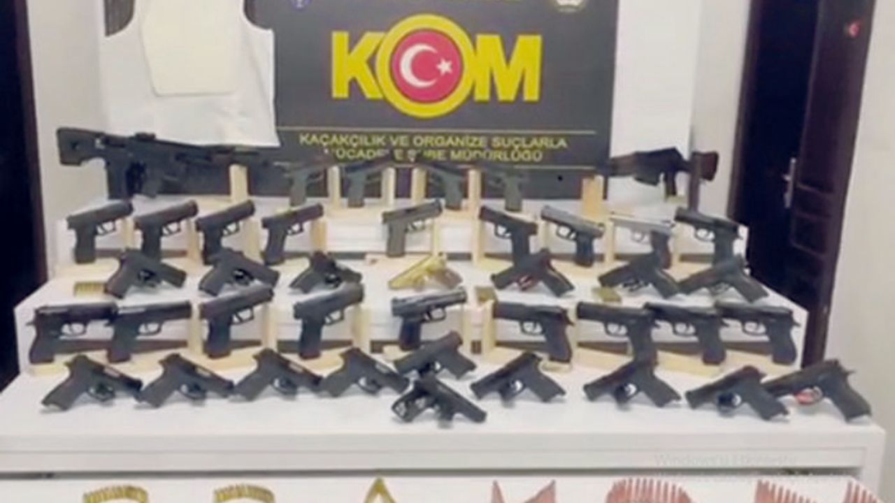 Mersin Emniyet Müdürlüğü KOM Şube Müdürlüğü'nce silah ticareti ve kaçakçılığı yapan şahısların tespitine yönelik yürütülen kapsamlı çalışmalar neticesinde; Mersin'de silah ticareti yapan şahıslarla irtibatlı oldukları tespit edilen 3 şahsın, kiraladıkları özel araç ile yüklü miktarda silah getireceklerine yönelik elde edilen bilgiler doğrultusunda; plakası tespit edilerek emniyet sistemleri ve drone destekli takibi yapılan araç ilimiz otoban uygulama noktasına gelişiyle birlikte durduruldu. Araçta yapılan aramalarda; 39 adet tabanca, 1 adet tabanca susturucusu, 1 adet çelik yelek, 2 adet tüfek, tabanca ve tüfeklere ait şarjörler ve çok sayıda fişek, 120 adet extasy olduğu değerlendirilen uyuşturucu hap, 10,7 gram kokain olduğu değerlendirilen madde, 20 bin TL nakit para ele geçirildi. Araçta bulunan 3 şahıs gözaltına alınarak gerekli tahkikat başlatıldı. (Haber Merkezi)