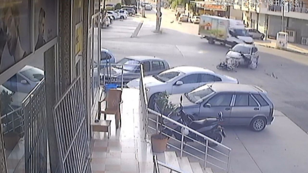 Mersin’in Tarsus ilçesinde otomobil ile motosikletin çarpışması sonucu yaşanan trafik kazasında 1 kişi yaralandı. Olay anı, çevredeki bir güvenlik kamerası tarafından kaydedildi.