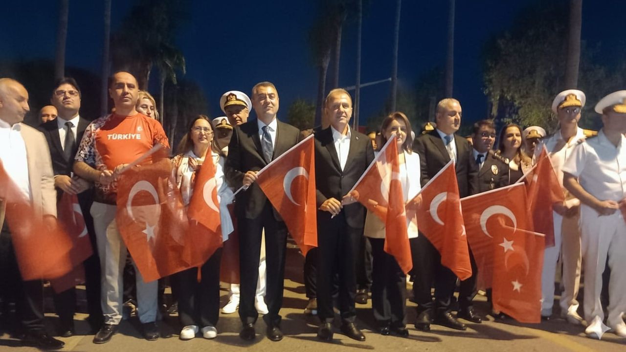 Mersin Valiliği tarafından düzenlenen Çelenk Sunma Töreni’ne ve ‘Bayrak Yürüyüşü’ne düzenlendi. Cumhuriyet’in 102. yılına özel, 102 metre uzunluğundaki Türk bayrağı etrafında bir araya gelen öğrenciler, yürüyüş boyunca marşlar eşliğinde ellerinde bayraklarla tek yürek olmanın değerini bir kez daha anlattı.