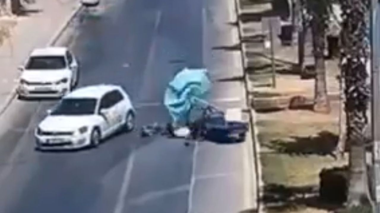 Olay, Yalınayak Mahallesi’nde bir iş yerinin güvenlik kamerasına da yansıdı. Görüntülerde, caddede ilerleyen otomobilin yaya geçidinden karşıya geçmeye çalışan motosiklete çarptığı anlar yer aldı.