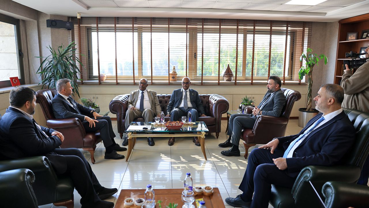 DEİK Sudan – Türkiye İş Konseyi Başkanı Serdar Yıldızgörer’in eşlik ettiği heyette; Sudan Kızıldeniz Eyalet Valisi Mustafa Mohamed Nour Mahmoud ve Sudan Limanlar İşletmeciliği Şirketi Genel Müdürü Gaylani Mohamed Gaylani yer aldı. MTSO Yönetim Kurulu Başkanı Hakan Sefa Çakır, Başkan Yardımcısı Cem Bucuge ve Yönetim Kurulu Üyesi İdris Üstemel tarafından ağırlanan heyet, makam ziyaretinin ardından düzenlenen "Ülke Tanıtım Toplantısı"nda iş dünyası temsilcileriyle bir araya geldi.