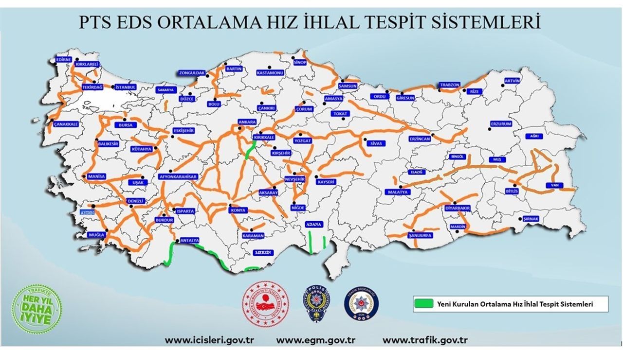 Konuyla ilgili Emniyet Genel Müdürlüğü'nden yapılan açıklamada, "Trafikte '1' can kaybının bile fazla olduğu 'Vizyon Sıfır' ve 'Güvenli Sistem' yaklaşımıyla oluşturulan 2021-2030 Karayolu Trafik Güvenliği Strateji Belgesi 03.02.2021 tarihinde 2021/2 sayılı Cumhurbaşkanlığı Genelgesi olarak yayımlanmıştır. Bu doğrultuda, Emniyet Genel Müdürlüğünce şehirlerarası karayollarında kazaların yoğunlukla meydana geldiği güzergahlarda Emniyet Genel Müdürlüğüne ait mevcut Kent Güvenlik Yönetim Sistemi / Plaka Tanıma Sistemi (PTS) kullanılarak, hızdan kaynaklı trafik kazalarını önlemek ve güvenli trafik akışını temin etmek amacıyla, ortalama hız ihlal tespit sistemleri kurulum çalışmaları devam etmektedir. PTS-EDS Projesi kapsamında Adana, Antalya, Mersin, Kırıkkale ve Konya illerimiz sınırları içerisinde kamu kaynaklarının etkin, ekonomik ve verimli kullanılması hedeflenerek, ortalama hız ihlal tespit sistemlerinin kurulum çalışmaları tamamlanmıştır. Sistemlerin öncesine, sürücülerimizi bilgilendirmek amacıyla trafik işaret ve uyarı levhaları yerleştirilmiş olup, 22.08.2025 tarihinden itibaren hız ihlallerine yönelik olarak trafik denetimlerinde kullanılmaya başlanılacaktır. Vatandaşlarımızın can ve mal güvenliklerinin sağlanmasının önceliğimiz olduğunu hatırlatır, sürücülerimizin yasal hız sınırları başta olmak üzere tüm trafik kurallarına uymaları hususu, kamuoyuna saygıyla duyurulur" ifadeleri kullanıldı.