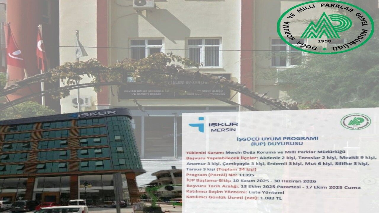 Mersin Çalışma ve İş Kurumu (İŞKUR) İl Müdürlüğü, Mersin Doğa Koruma ve Milli Parklar Müdürlüğü iş birliğiyle düzenlenecek İşgücü Uyum Programı (İUP) için başvuruların başladığını duyurdu.