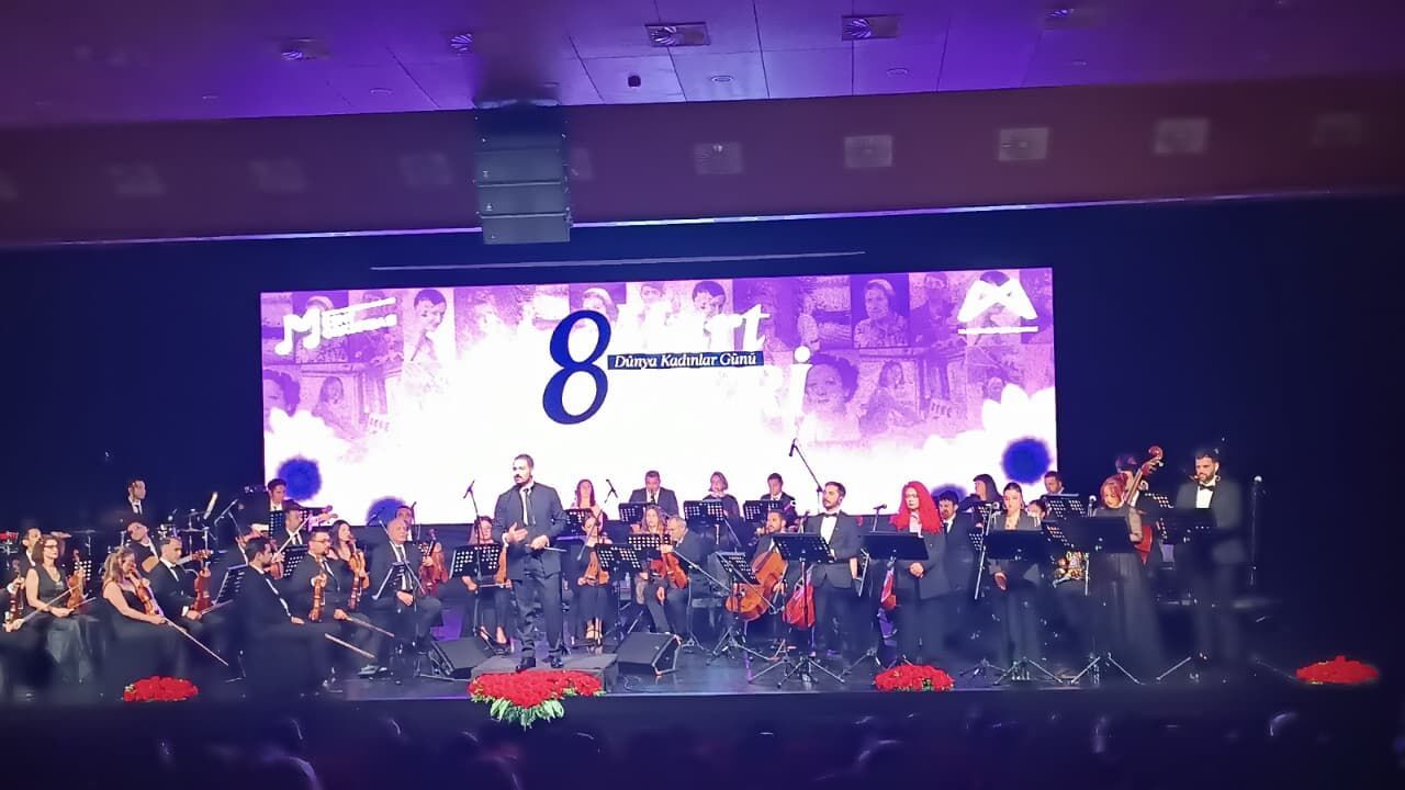 8 Mart Dünya Kadınlar Günü kapsamında Mersin’de Kent Orkestrası konser verdi. 7 Mart Cumartesi akşamı saat 20:00'da başlayan konser izleyicilerin beğenisini topladı. Konser, Mersin Büyükşehir Belediyesi Kongre ve Sergi Sarayı’nda gerçekleştirildi. 8 Mart etkinlikleri kapsamında düzenlenen konser programına çok sayıda vatandaş katıldı. Geniş bir orkestranın sahne aldığı programda müzisyenler ve solistler sahnede performanslarını sergiledi. Program boyunca seslendirilen eserler katılımcılar tarafından ilgiyle takip edildi. Konser sırasında sahne arkasındaki ekranda “8 Mart Dünya Kadınlar Günü” ifadesinin yer aldığı görseller yansıtıldı. Özel gün kapsamında gerçekleştirilen programda izleyicilerin müziklere alkışlarla eşlik ettiği görüldü. Sanatseverlerin yoğun ilgi gösterdiği konserde orkestranın seslendirdiği eserler salonda beğeniyle karşılandı. 8 Mart etkinlikleri kapsamında düzenlenen konser programı, izleyicilerin yoğun ilgisi ve alkışları eşliğinde sona erdi.