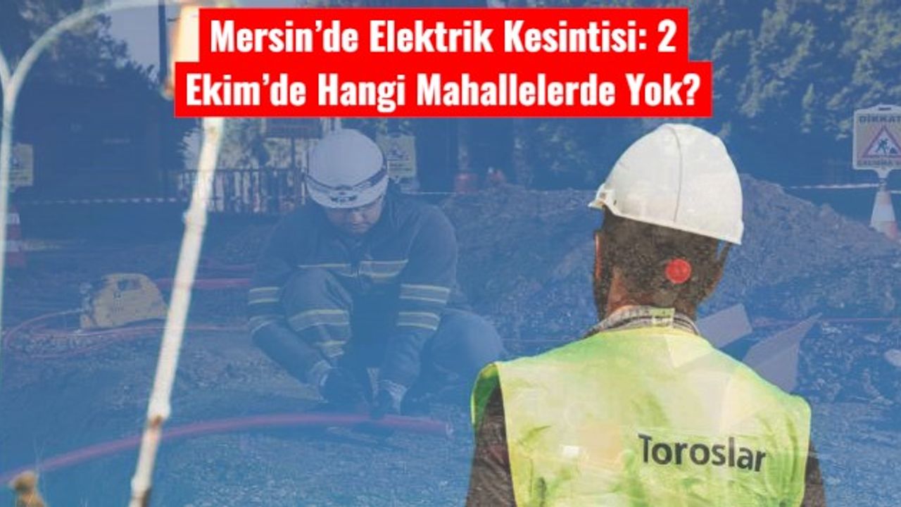 Mezitli ilçesinde 09.00 – 18.00 saatleri arasında Barbaros Hayrettin Paşa, Seymenli, Fındıkpınarı ve Gazi Mustafa Kemal Bulvarı çevresinde elektrik kesilecek. Kesintinin nedeni, hat yenileme ve güvenlik amaçlı bakım çalışmaları olarak duyuruldu.