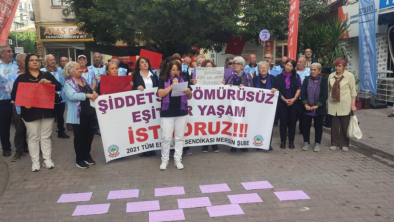 Tüm Emekli-Sen Mersin Şubesi önünde bir araya gelen kadınlar, basın açıklaması yaparak, tepkilerini dile getirdi. Burada kadınlar açıklama yapan Sıdıka Gündüz, 25 Kasım'ın her yıl Kadına Yönelik Şiddete Karşı Uluslararası Mücadele Günü olarak kutlandığını belirterek, "Latin Amerika’daki Dominik Cumhuriyetinde Rafael Trujillo’ün diktatörlüğüne karşı mücadele eden siyasi hareketin üyesi üç kızkardeş. Patria, Minerva ve Maria Mirabal 25 Kasım 1960 tarihinde diktatörün resmi haydutları tarafından katledildi. Katliamdan bir yıl sonra diktatör Rafael Trujillo vurularak öldürüldü. Mirabal kız kardeşlerin anıları ve mücadelelerine en derin saygılarımızı sunuyoruz. Kadınların dünya çapında mücadelesinin bir sonucu olarak 25 Kasım, 1999 yılında Birleşmiş Milletler tarafından Kadına Yönelik Şiddete Karşı Uluslararası Mücadele Günü ilan edildi. Bugün de, Dominik Cumhuriyetine komşu Venezuella, bir yandan ABD'nin ağır ambargosu altında ekonomik olarak çökertilmeye çalışılıyor, diğer yandan sözde muhalefet lideri emperyalizm ve siyonizm iş birlikçisi Maria Corino Machado, Nobel Barış ödülüyle parlatılıyor. Bizim sempati ve dayanışmamız emperyalizm ve siyonizm iş birlikçilerine değil, ülkelerini onurlarını egemenliklerini korumak için milis güçlerine elde silah katılan Venezuella'lı Bolivarcı kadınlaradır. Yüreğimiz, Filistin'de Suriye'de Yemen'de Sudan'da ve dünyanın her yerinde saldırıya uğrayan, öldürülen, kolay hedef olarak görülen kadınlarla birlikte atıyor, atacak" dedi.