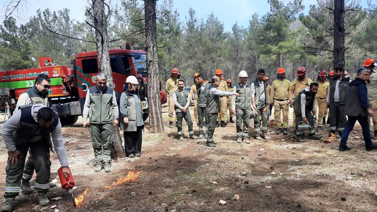 Tatbikata Mut Orman İşletme Müdürü Ahmet Gürbüz, müdür yardımcıları ve işletme şefleri de katıldı.
