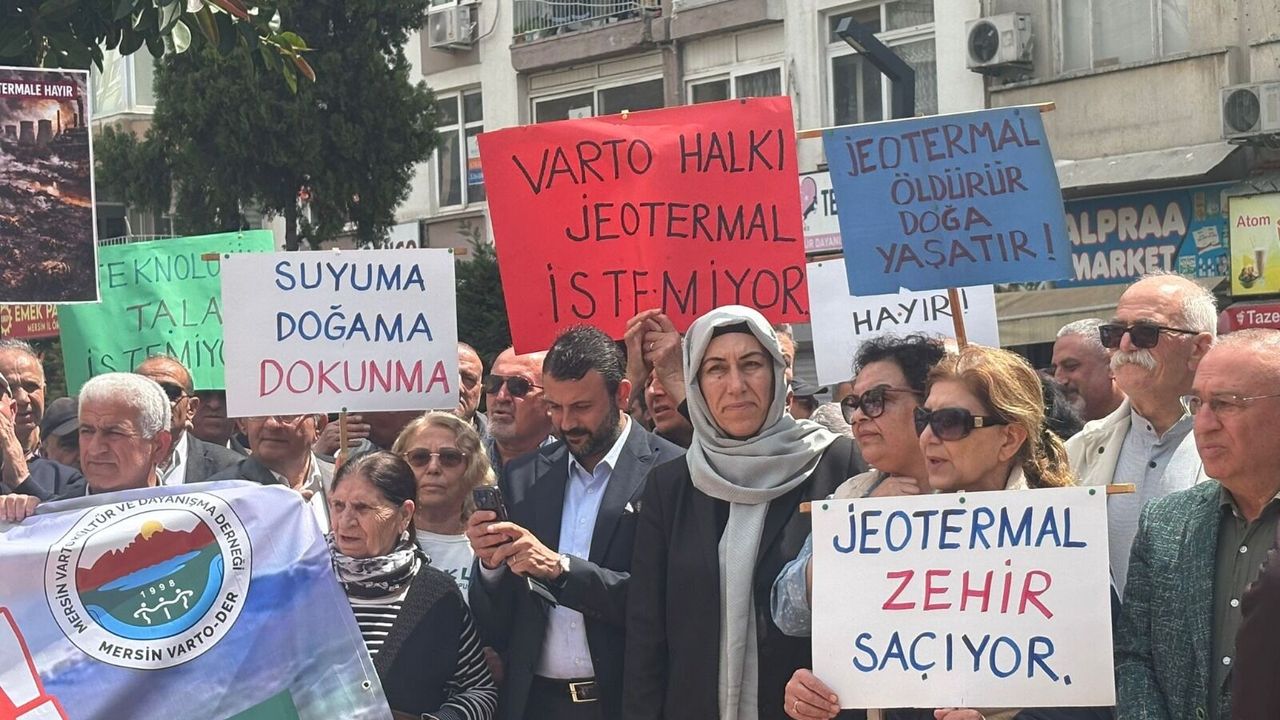 Mersin’de yaşayan Vartoluların katılımıyla gerçekleştirilen açıklamada, demokratik kitle örgütleri, siyasi parti temsilcileri, doğa savunucuları ve vatandaşlar da yer aldı. Dernek adına konuşan Güler Bingöl, Muş Valiliği Mera Komisyonu tarafından Amerikan şirketi İGNİS Enerji A.Ş.’ye verilen izinle Varto’da 16 köyü kapsayan alanda jeotermal kaynak arama ve santral projesi için sondaj çalışmalarının başlatılmak istendiğini ifade etti.